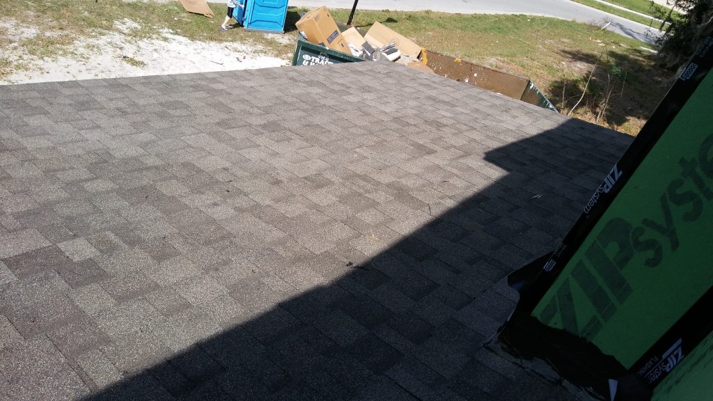 They’ve added a roof since my last post, so the house is roof-covered now on all points.