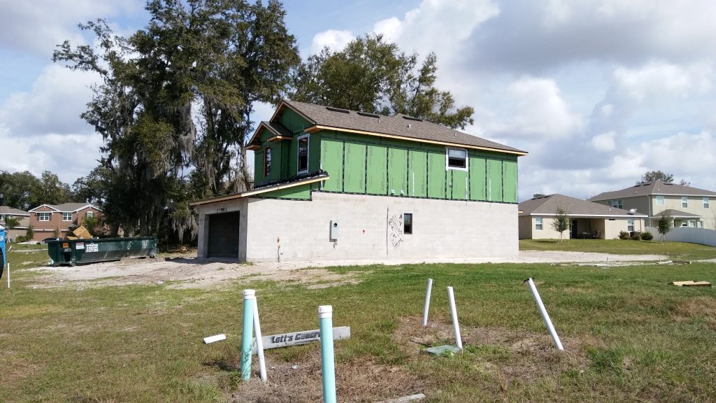 Aside from that, not much progress during the latter month of February or what’s passed in March so far….  There’s a one-story house they just broke ground on in February rapidly going up three lots down….Already has a front door on it…
