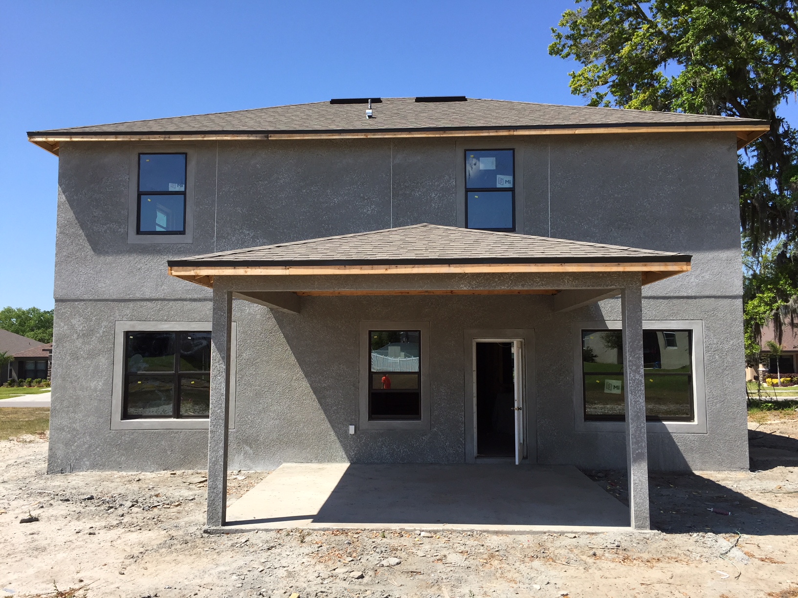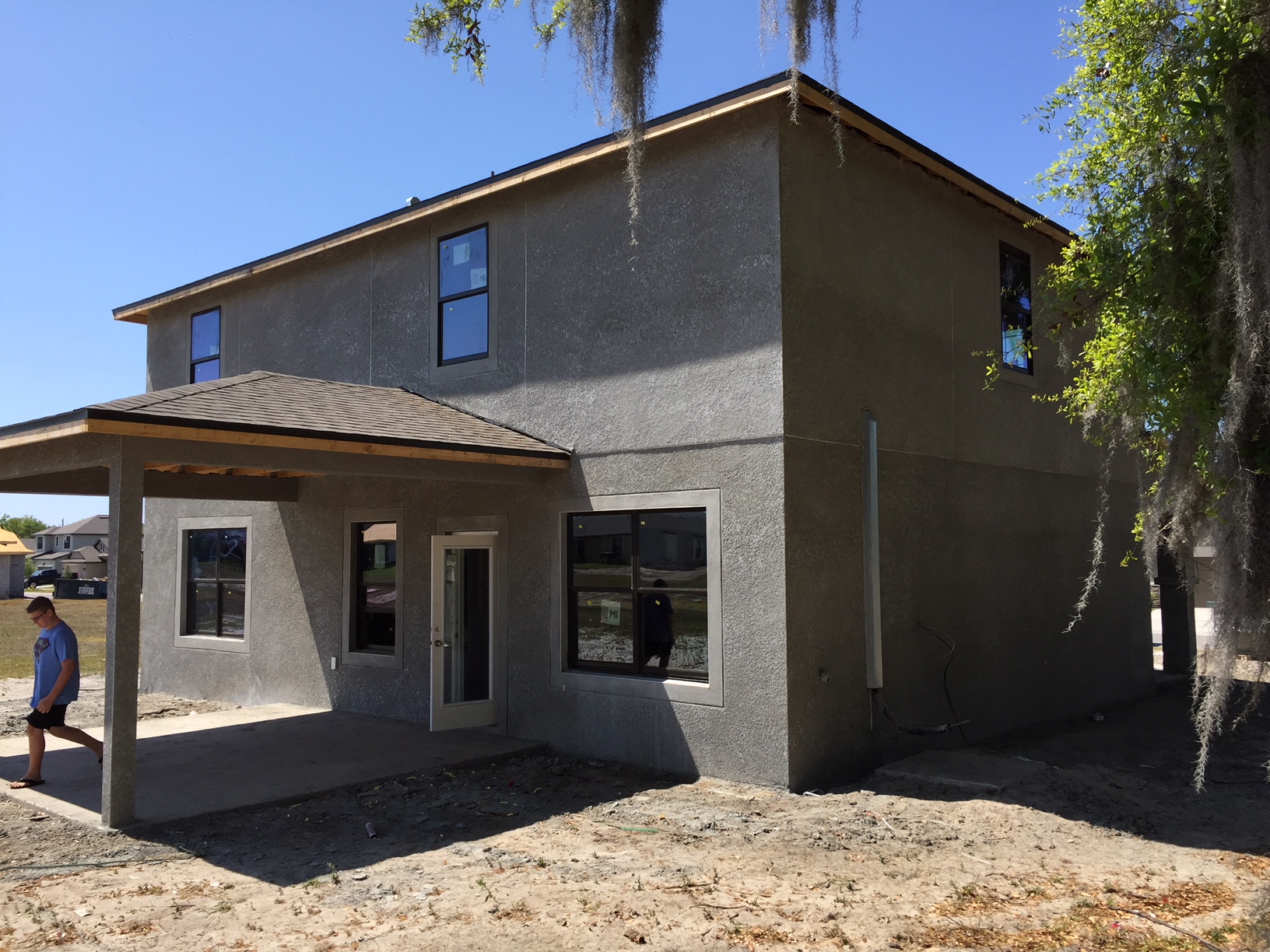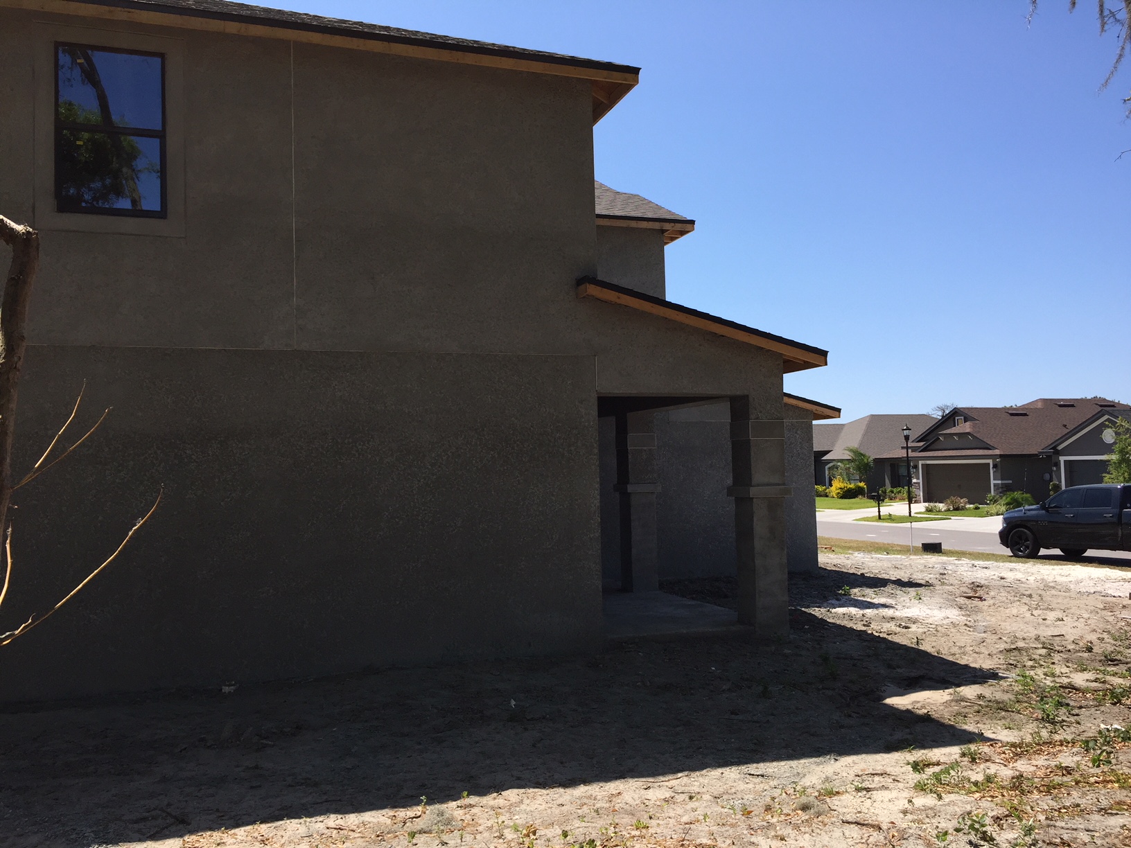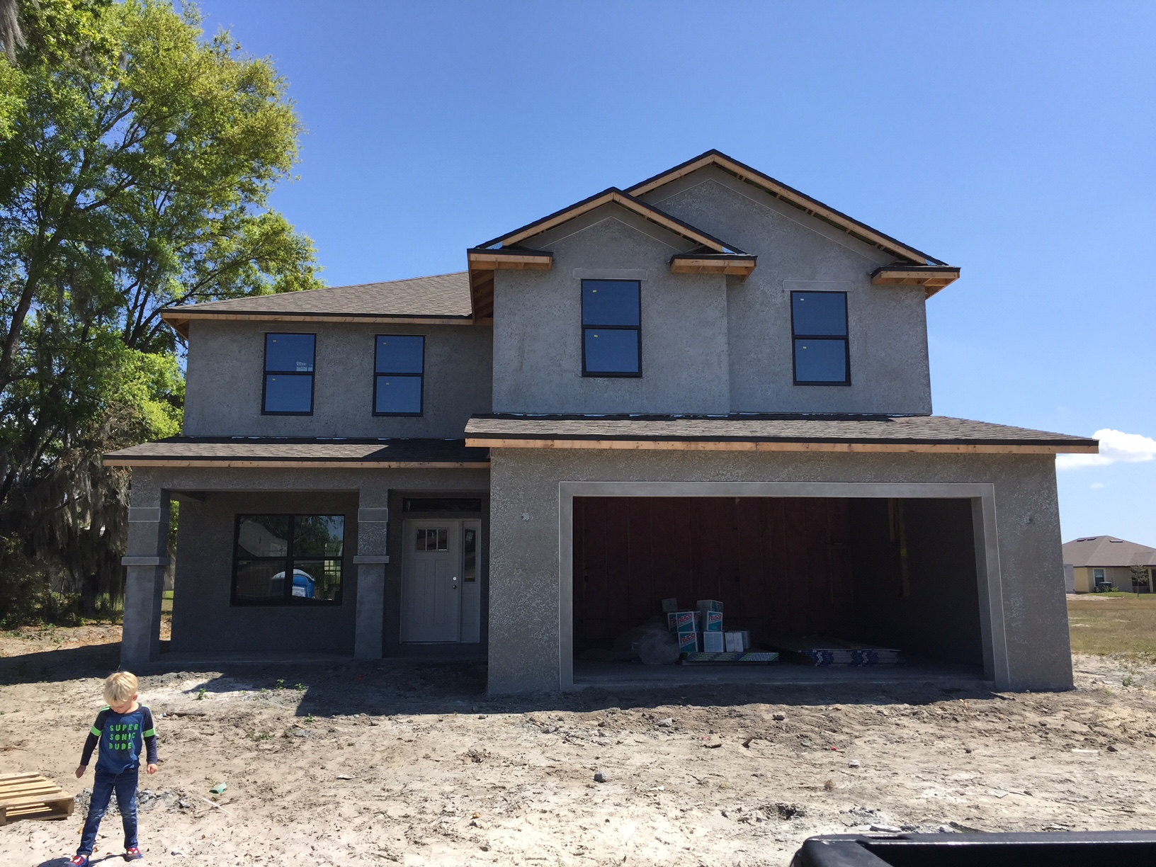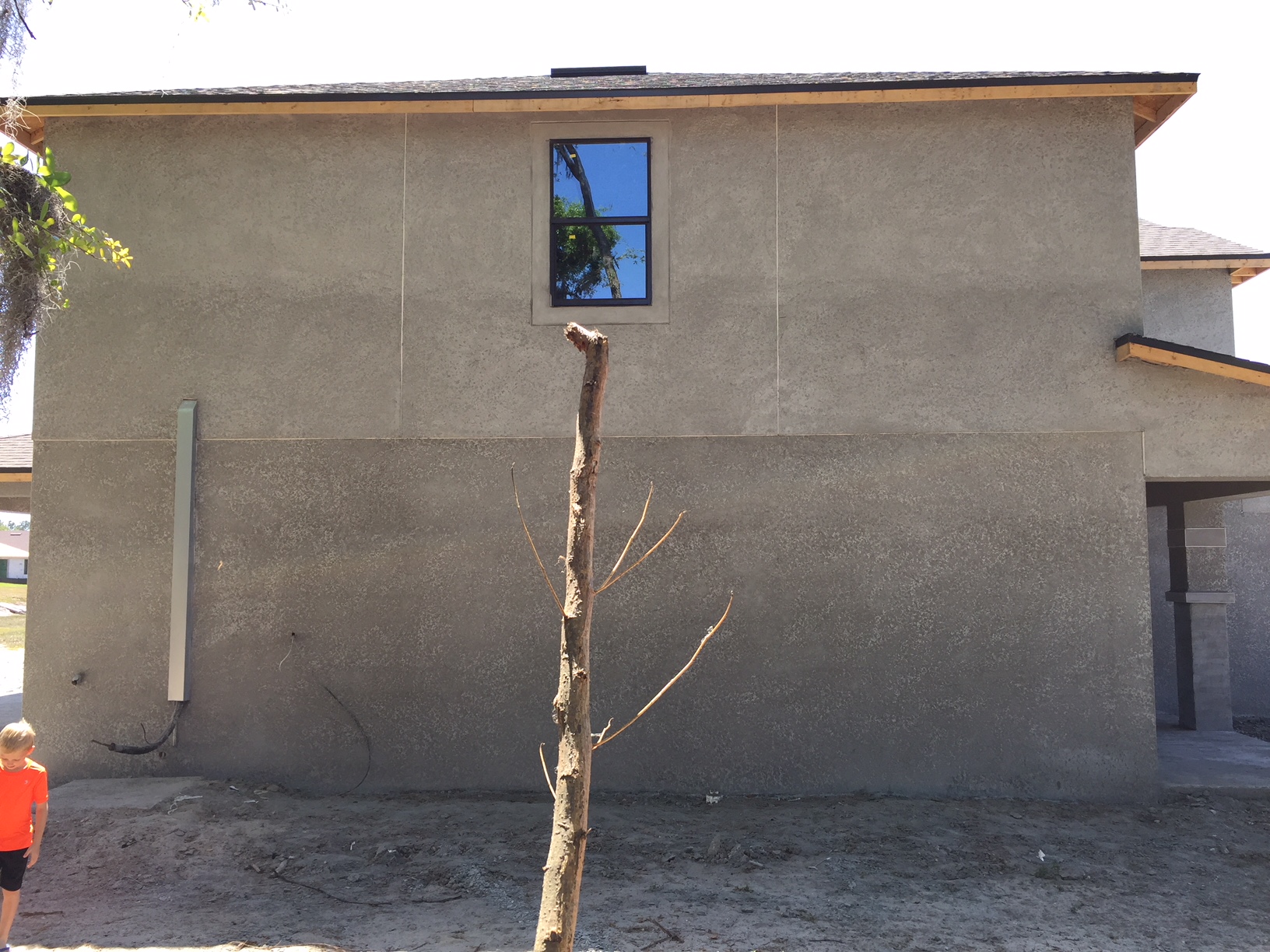 OH.. HEY, at least there’s stucco on the outside of the home now!  Check it out! 🙂